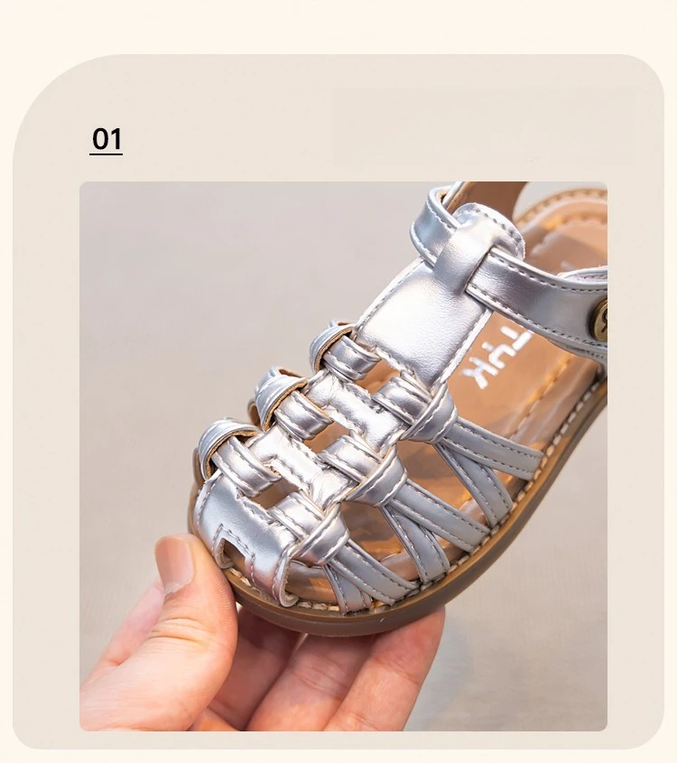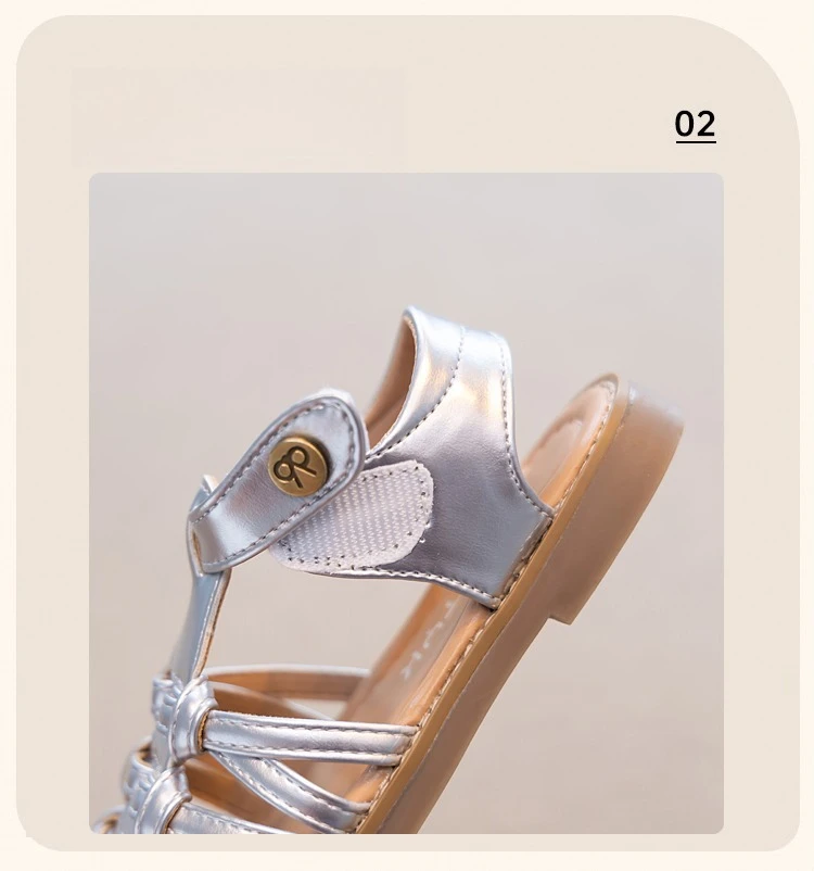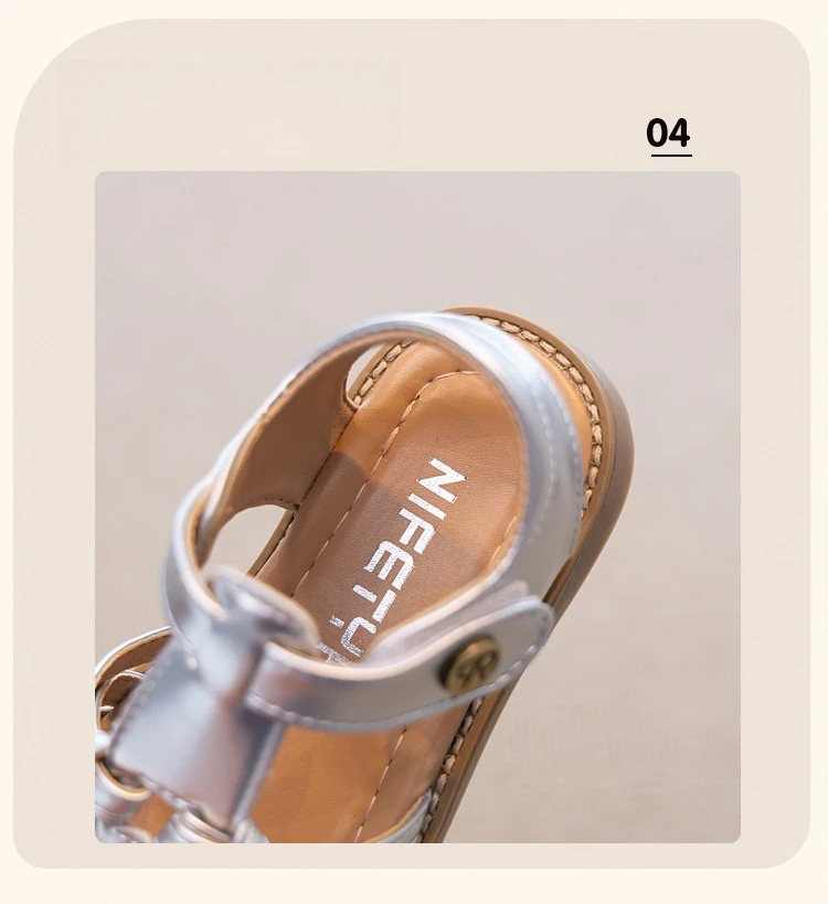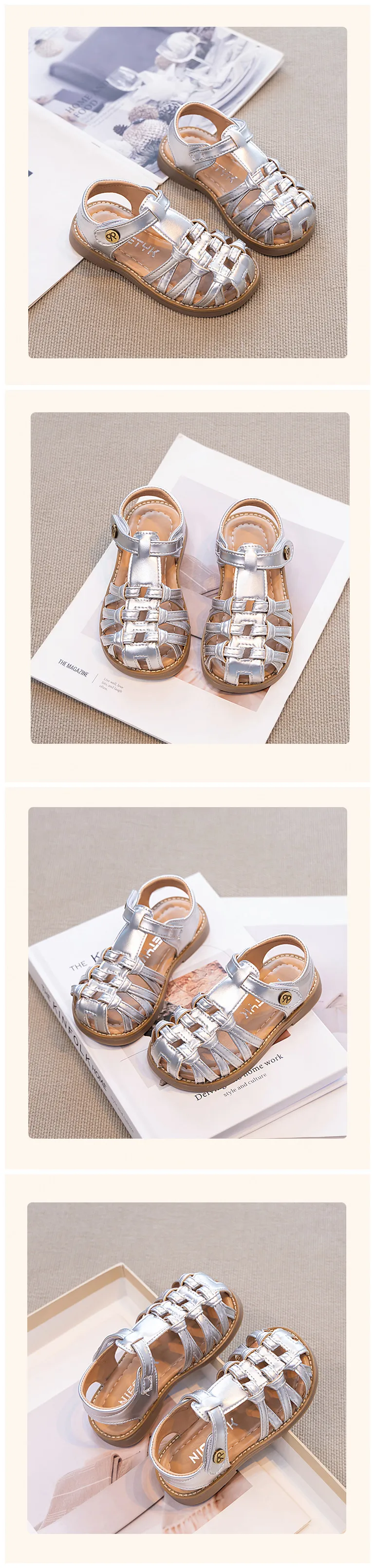 Kids Leather Cage Sandals for Girls 2025 Summer New Toddler Beach Vacation Shoes Non-slip Soft Sole Retro Garden Wedding Flats - beige / 23