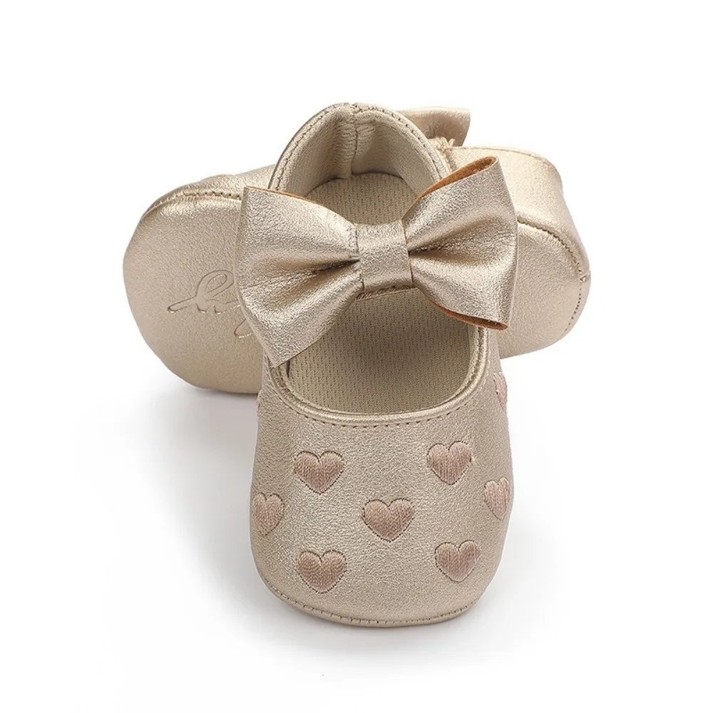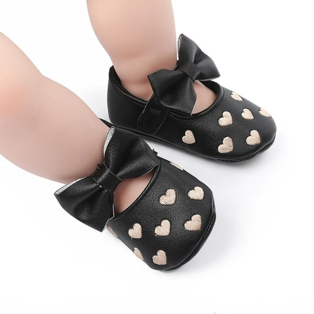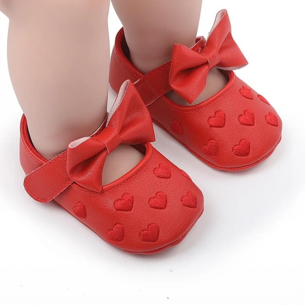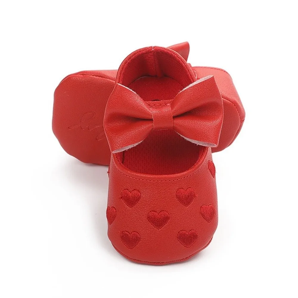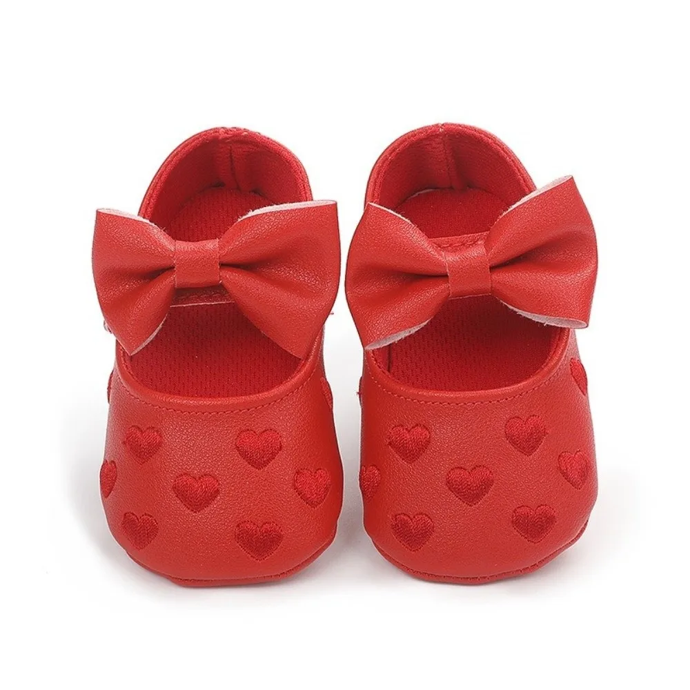 Non-slip Leather Baby Shoes Love Bow Soft Material Newborn First Walkers Multicolor Breathable Toddler Shoes Toddler Girls - Pink