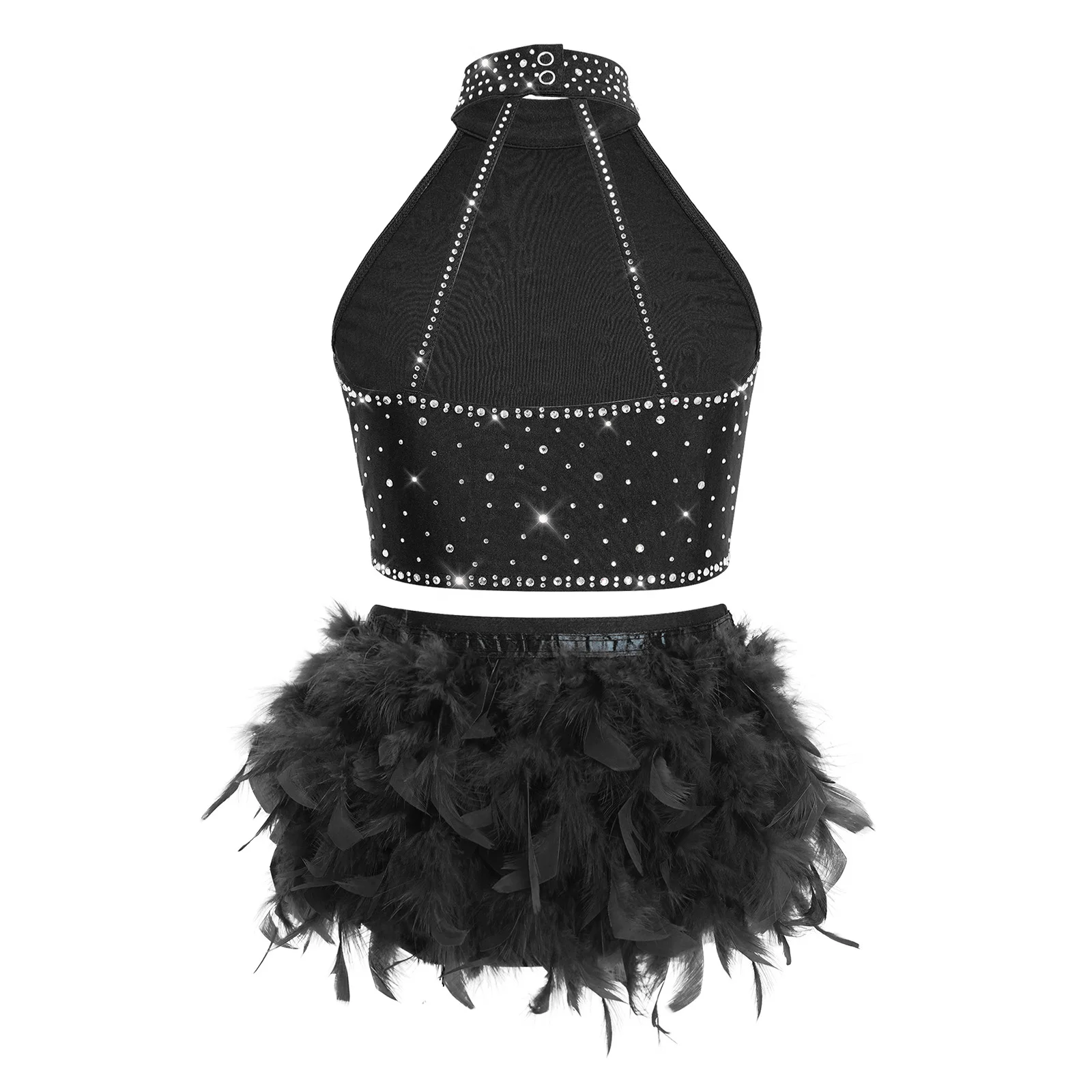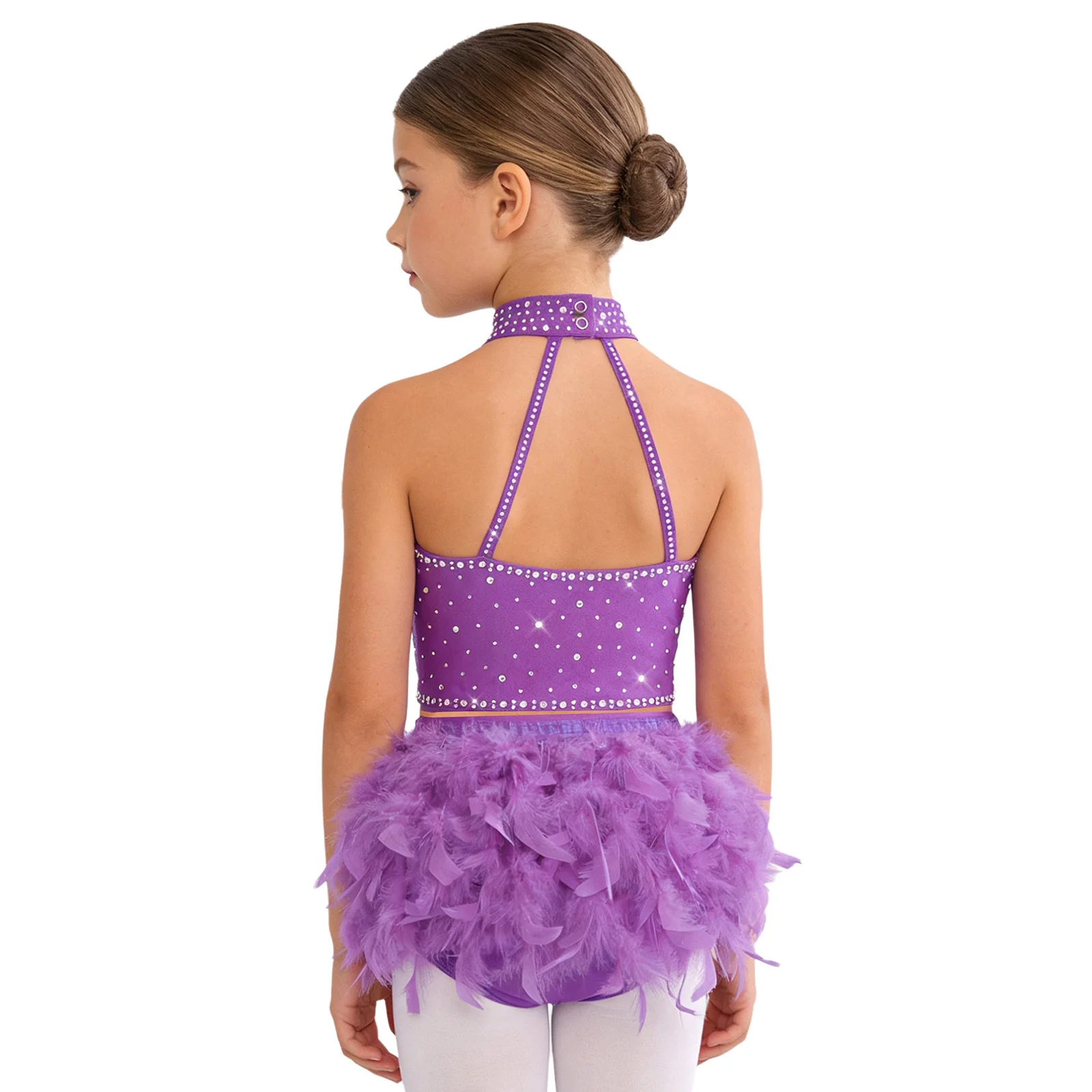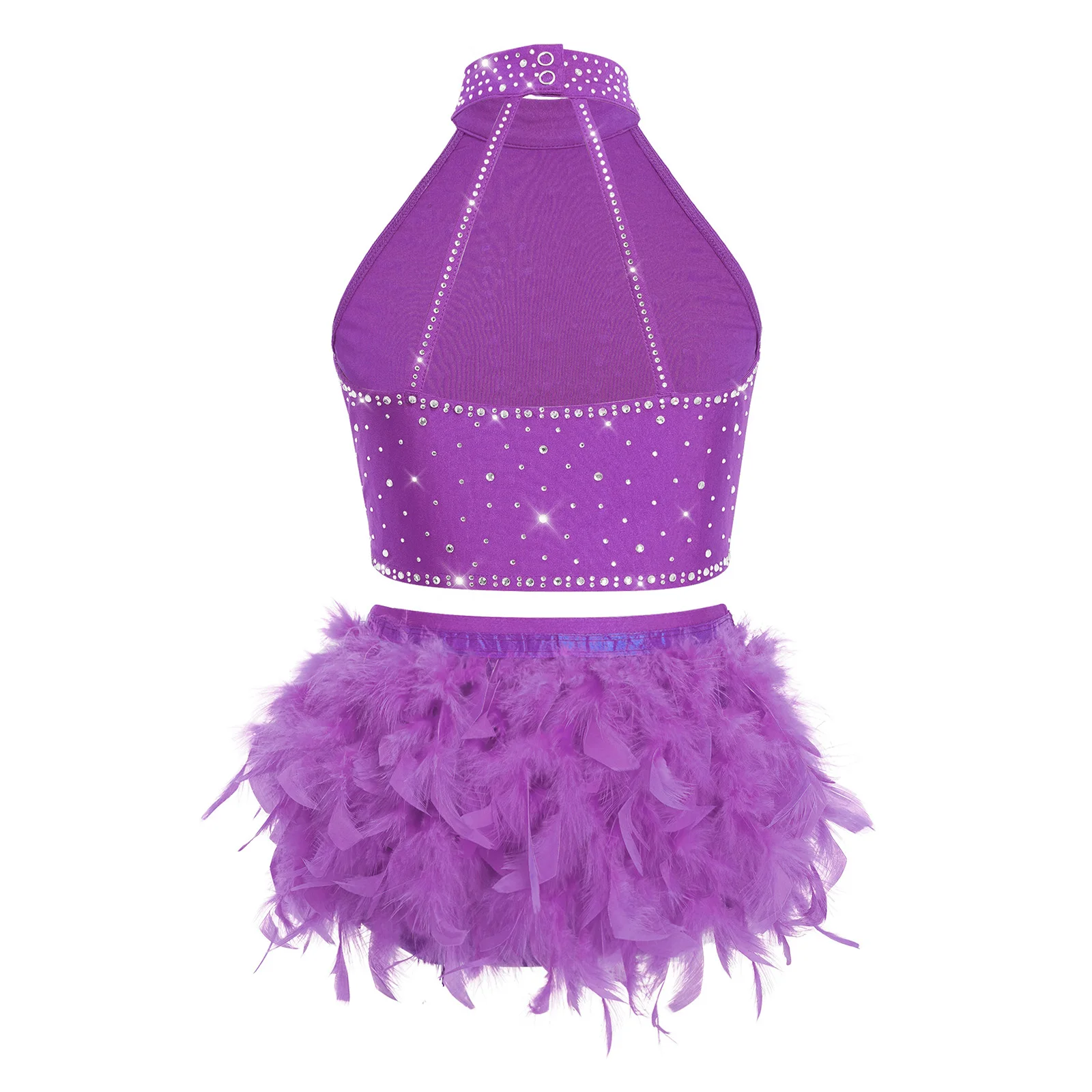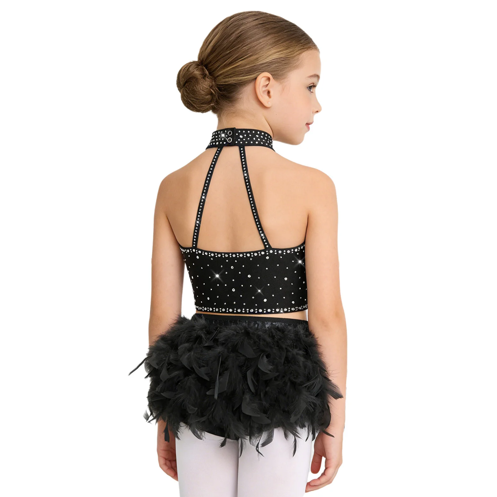 Kids Girls Ballet Samba Rumba Dance Outfits Latin Dance Performance Costume Crop Top with Tassels Feather Skirt Dance Wear - Royal Blue / 6