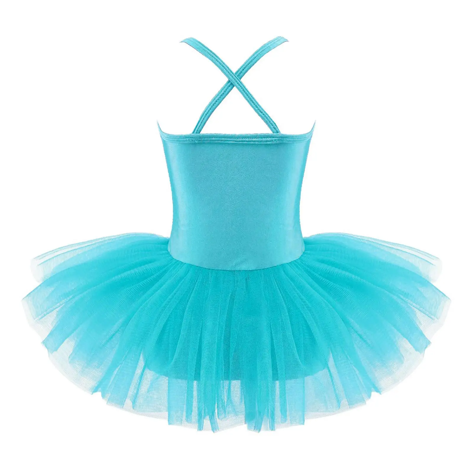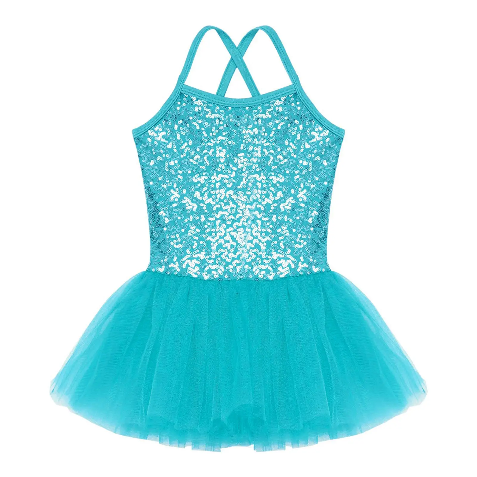 Kids Girls Ballet Tutu Dress Sequin Cross Strap Sleeveless Performance Costume Gymnastics Sequined Ballerina Leotard Gown Outfit - Red / S