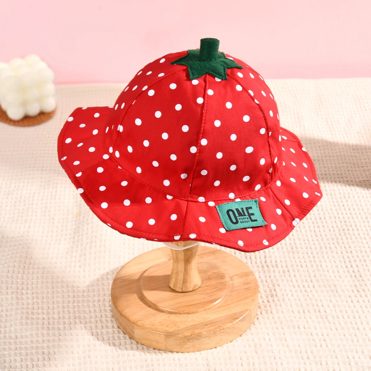 Baby Girl & Toddler Wide Brim Strawberry Pattern Sun Hats Kids Sun Protection Bucket Cap Cute Adjustable Hat - Red / 0-12 Months
