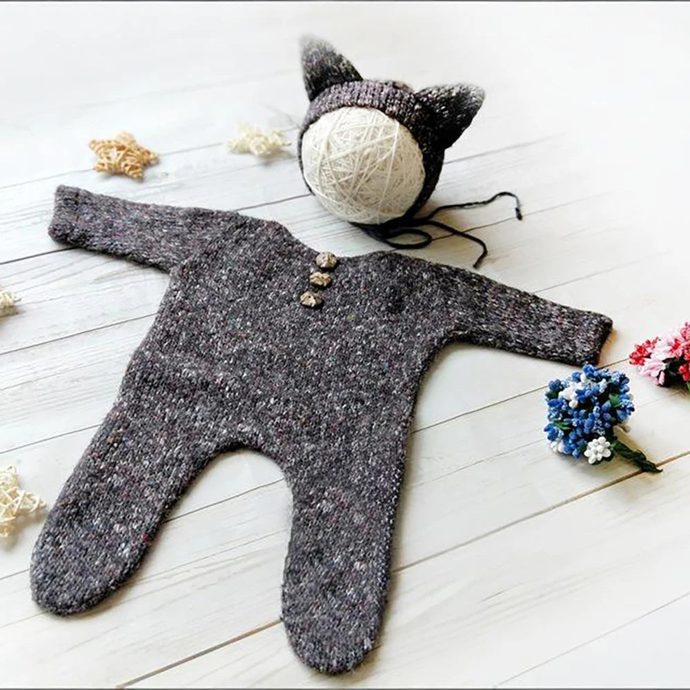 Baby Costume Photography for Newborns Photo Props Bebe Accessories Boy Clothes Romper Knitted Hat Studio 0-3 Months Suit items - NO.2