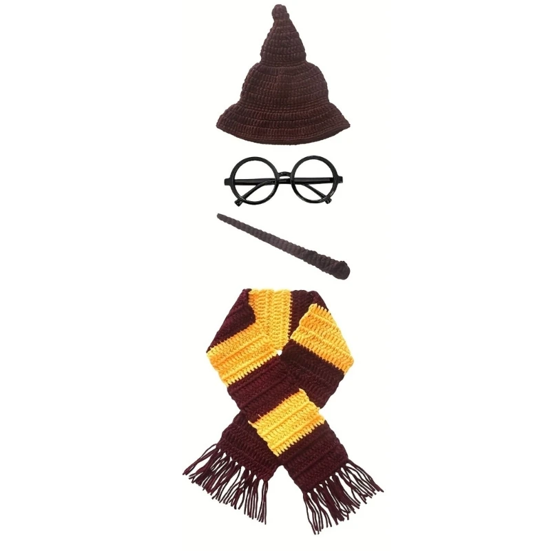 Baby Photo Costume Wizard Hat Glasses Scarf Newborn Photo Props Photoshoot Clothing Infant Skin-Friendly Photo Outfit - Default Title