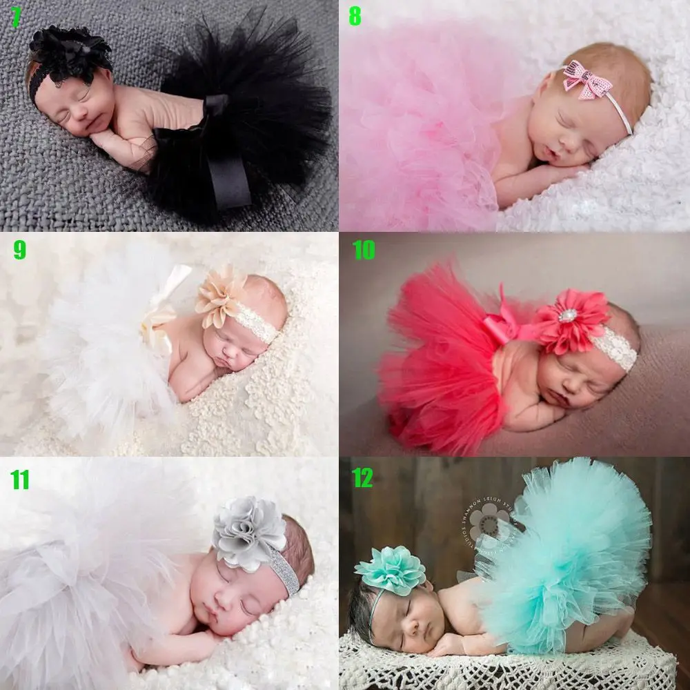 Cute Princess Newborn Outfit Infant Suit Headband Set Tutu Skirt Baby Girl Summer Dress Costume Photography Props Accessories - Style19