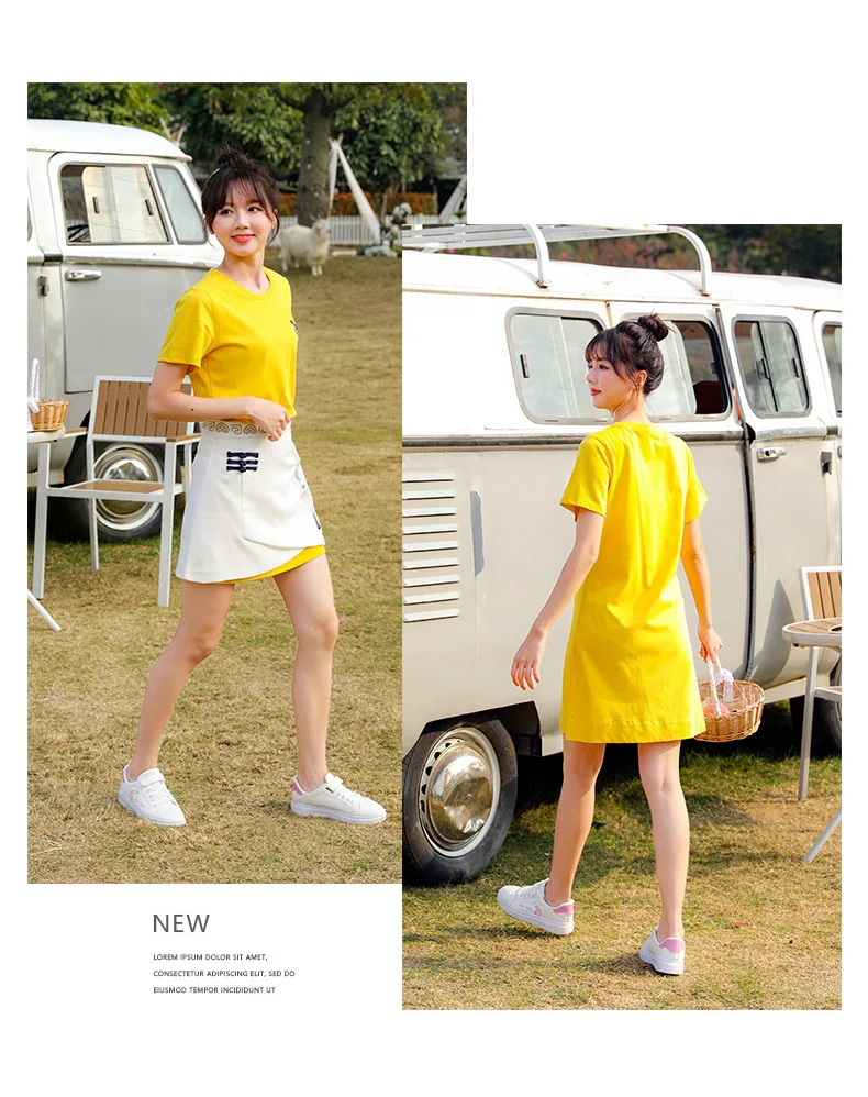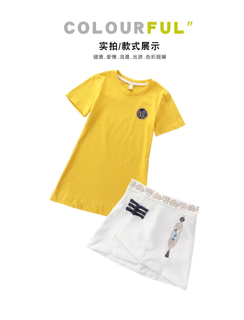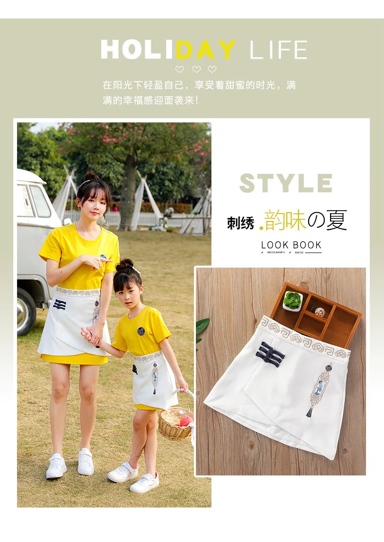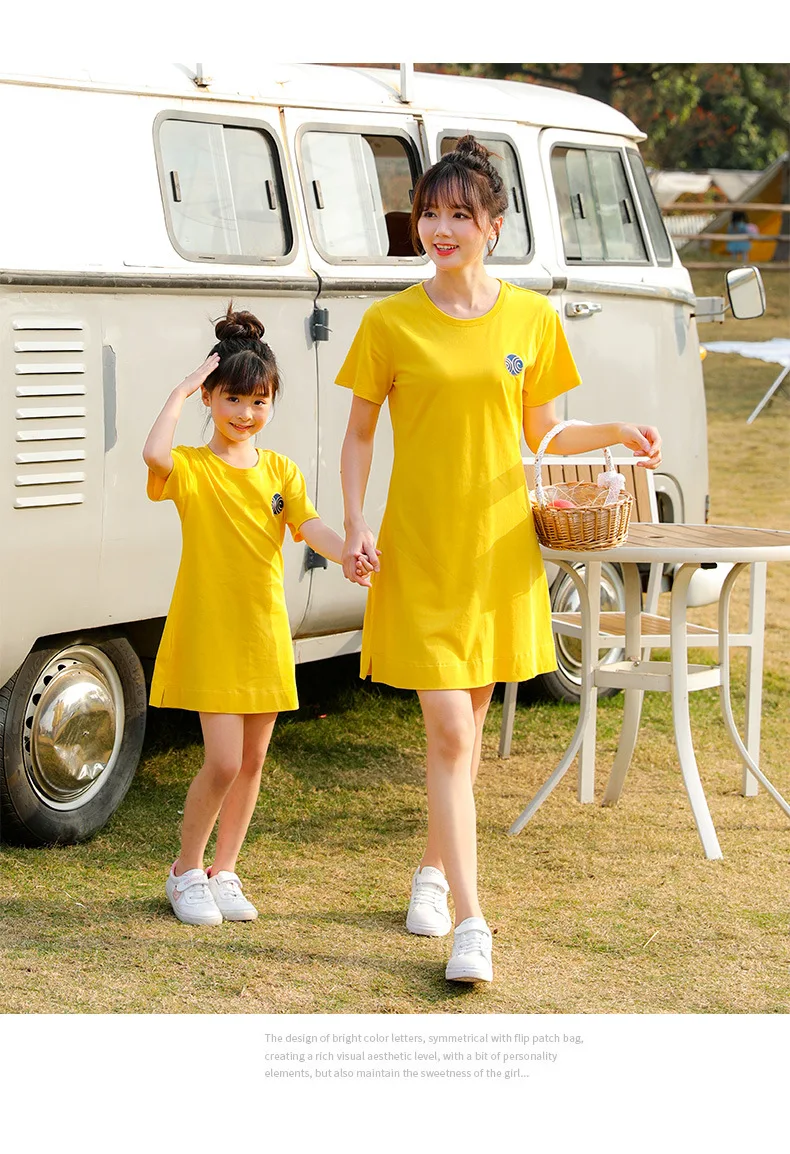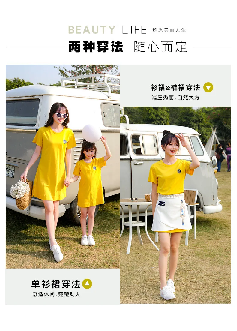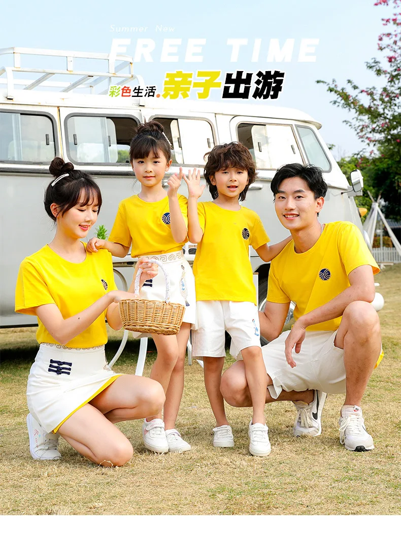 Family Matching Summer Clothes Sets Mom Daughter Skirt and Long T Shirt 2 Pieces Suit Dad Son Tops and Shorts Two Piece Outfits - Yellow / girls sets-3T
