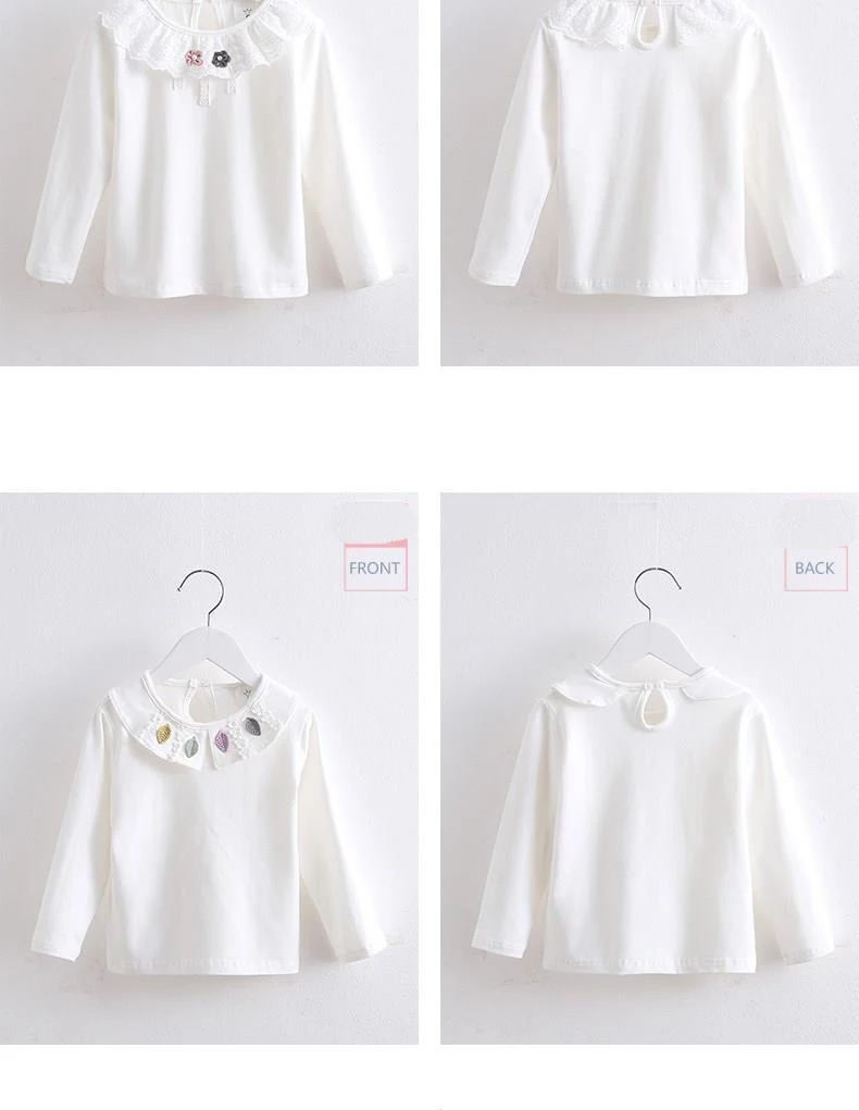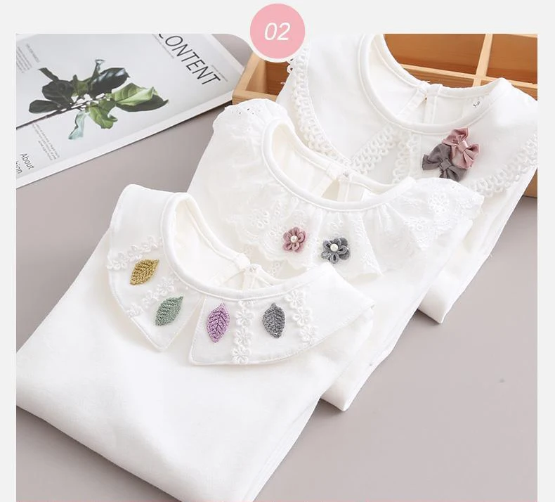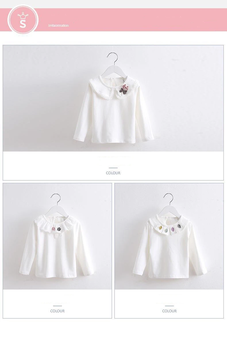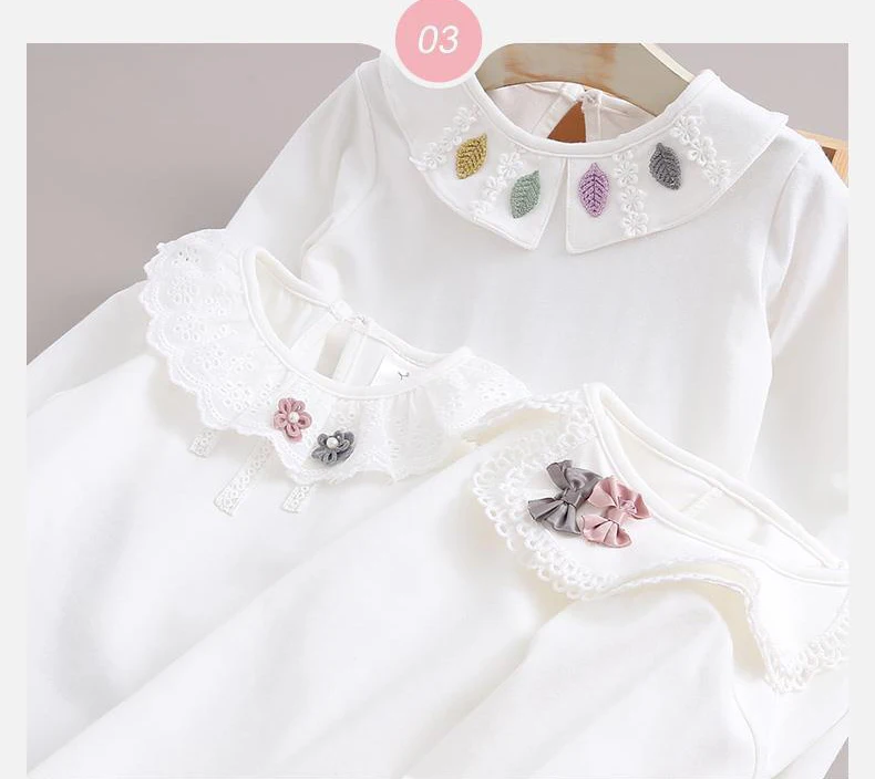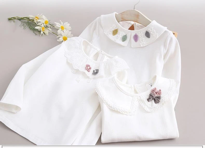 Toddler Girls T-shirts Autumn Cotton White Pullover Tops for Kids Fashion Children Long Sleeve Bottoming Shirts Cute Flower Tees - T-shirt a1 / 2T (90cm)