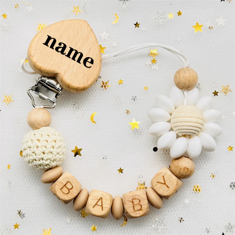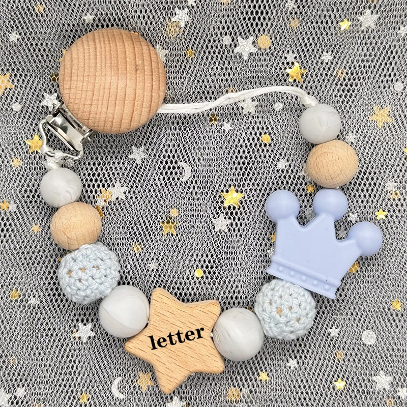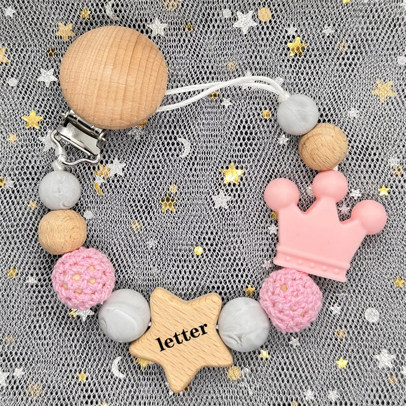 Material: Handmade Silicone Beads Wooden Ring Pacifier Clips