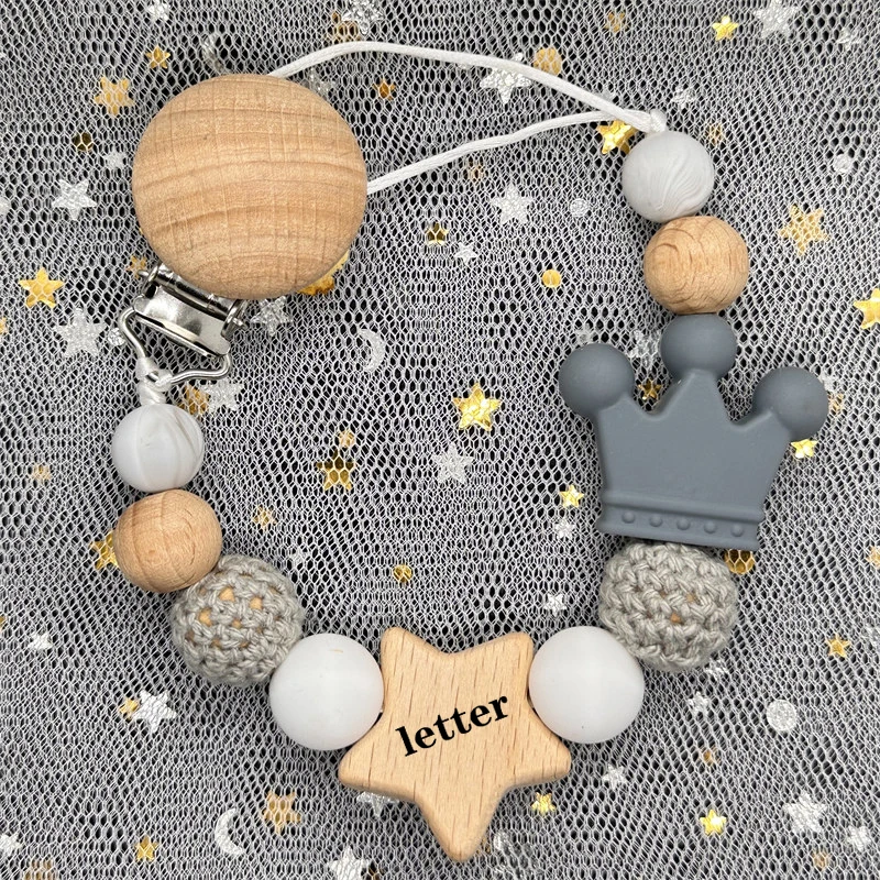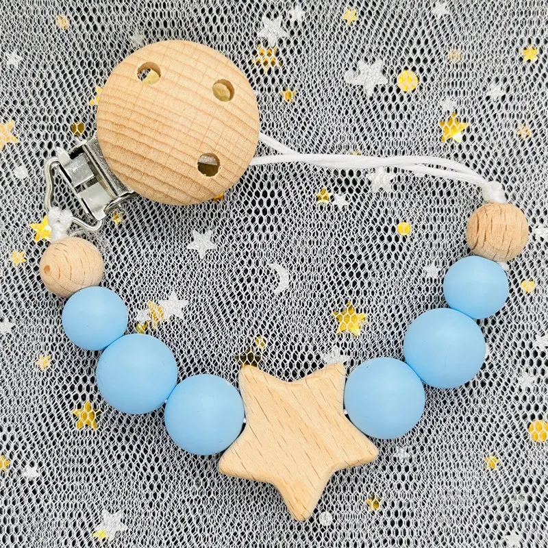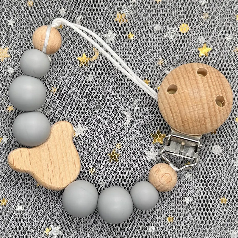 Model Number: Handmade Silicone Beads Wooden Ring Pacifier Clips
