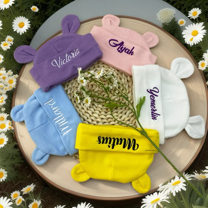 Luxury Baby Knit Hat with Custom Embroidery Name for Newborn Photo Shoot Soft 0-6 Months Christening Cap Accessory - Grey / Name customized / China Mainland