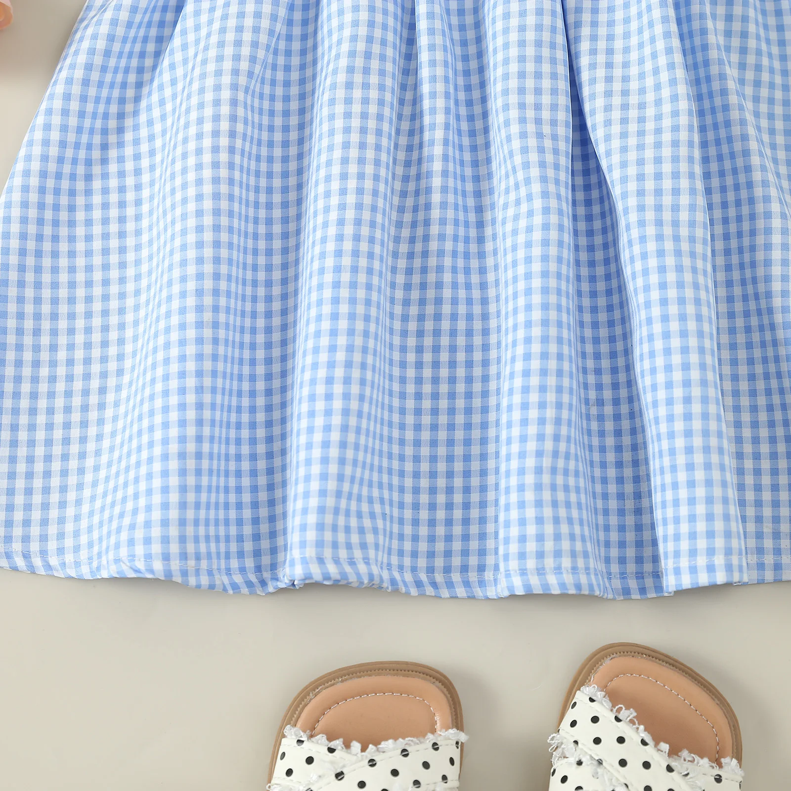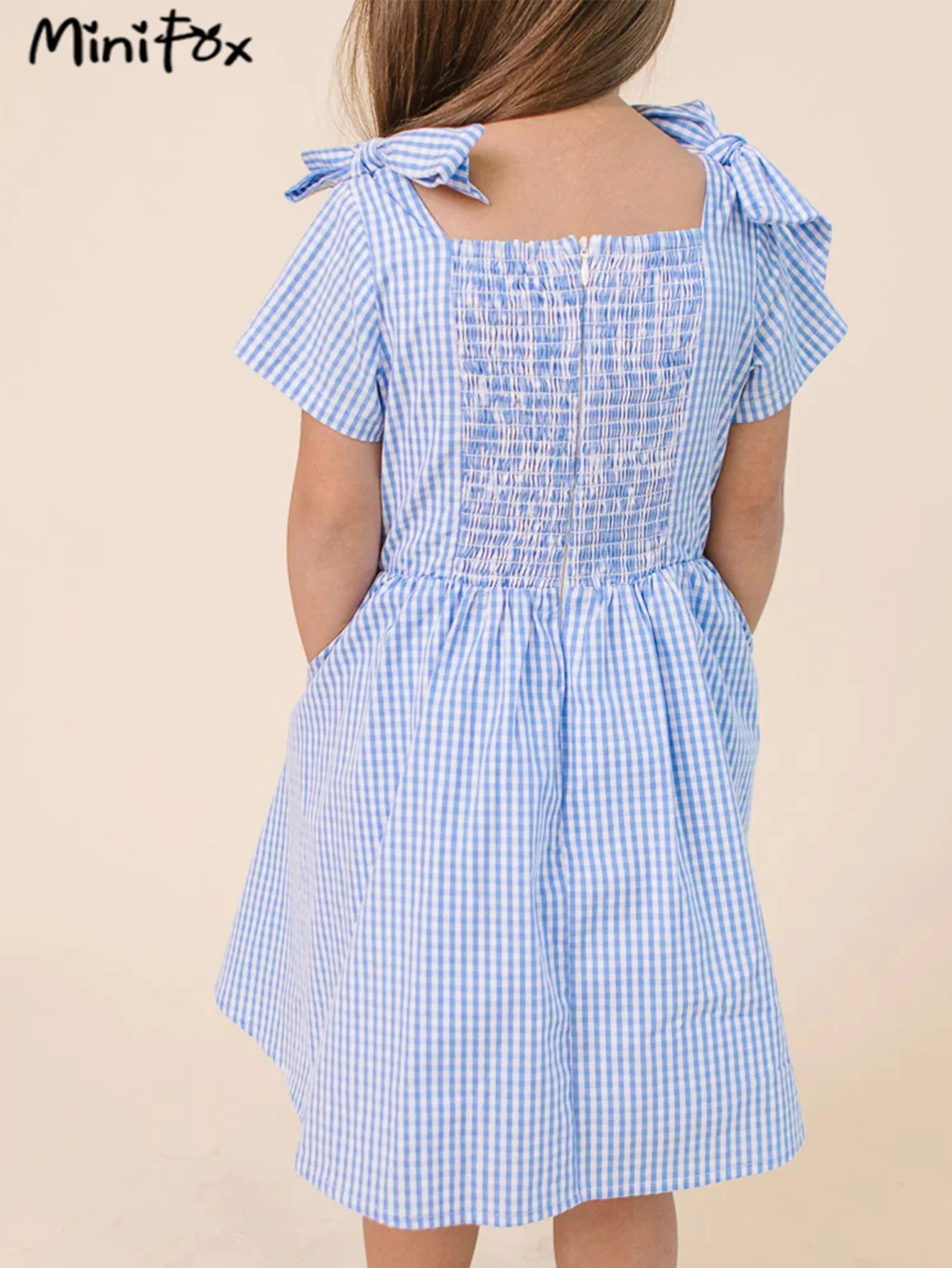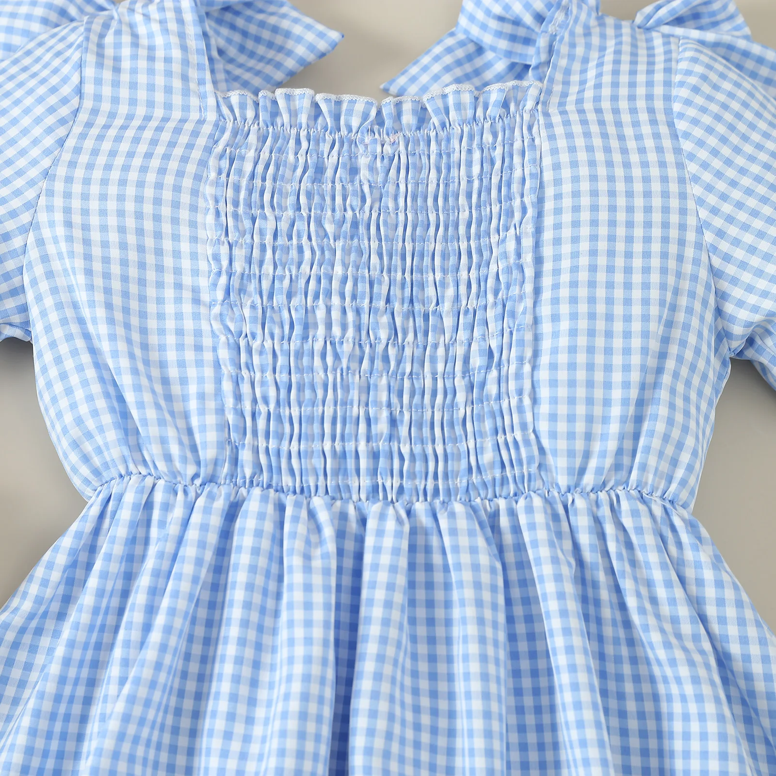 Blue Plaid Smocked Summer Outfits for Toddler Brother And Sister Matching Gentleman Boy Set Girl Dresses Family Clothes - Girl Dress / 18-24M