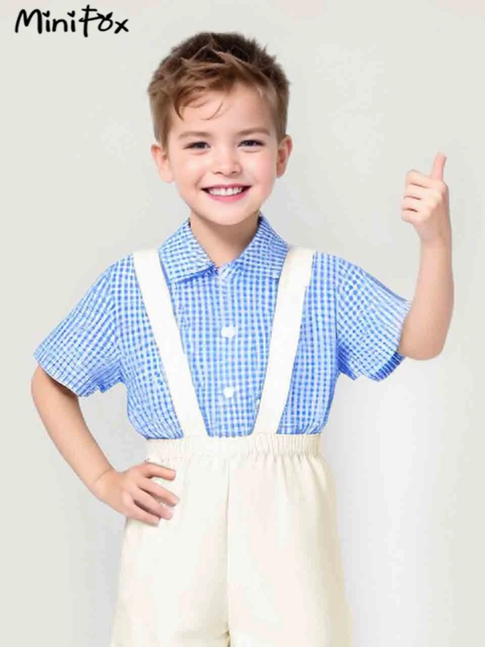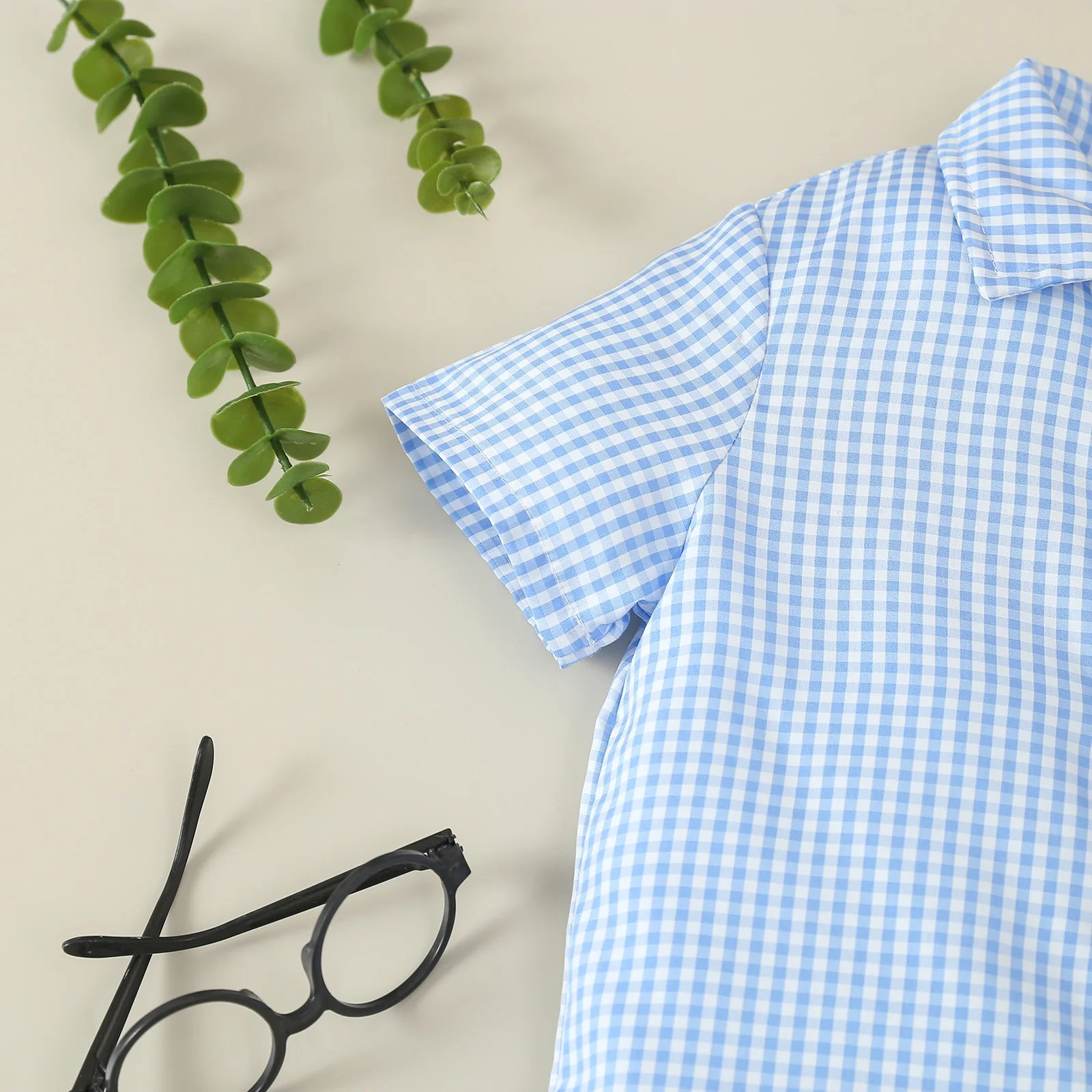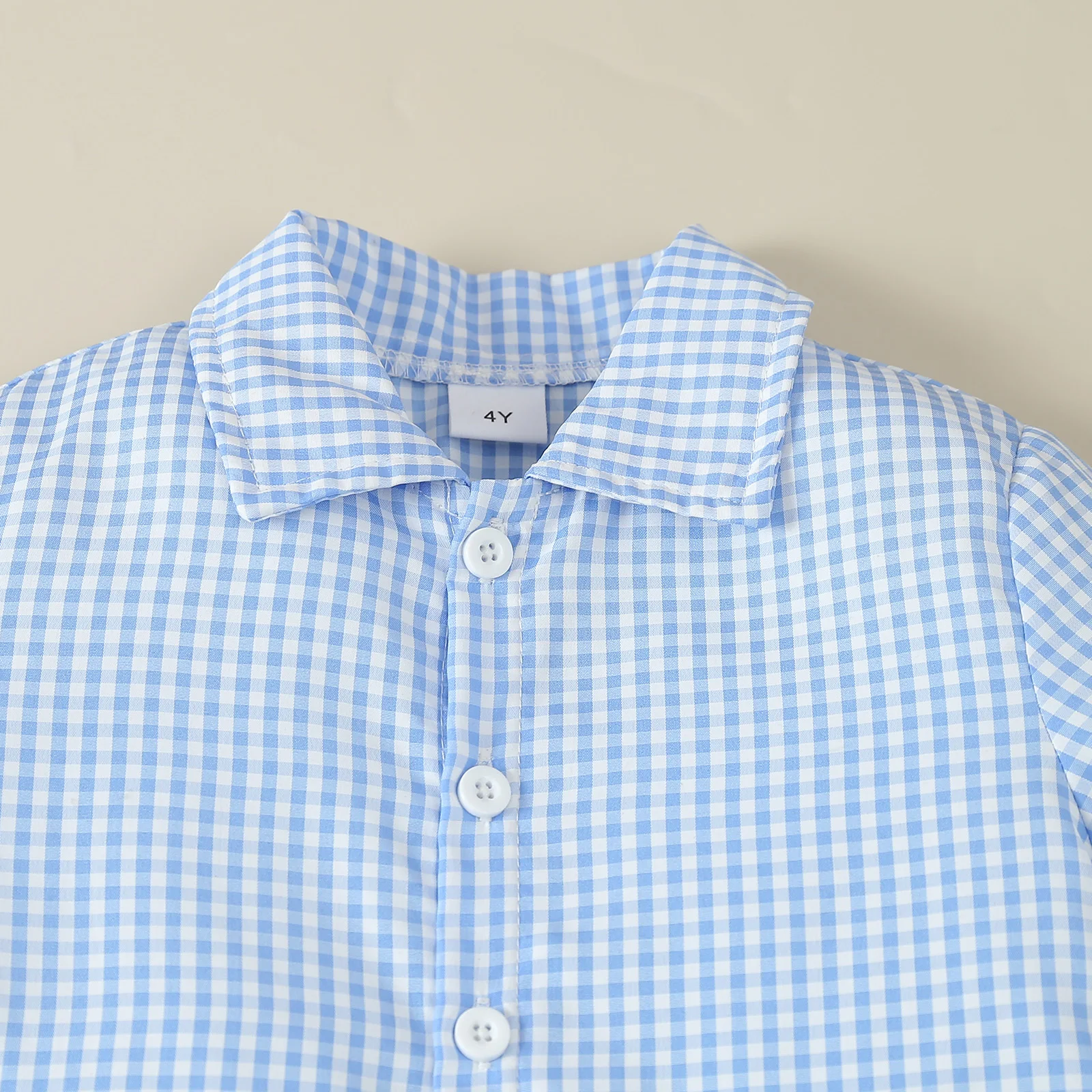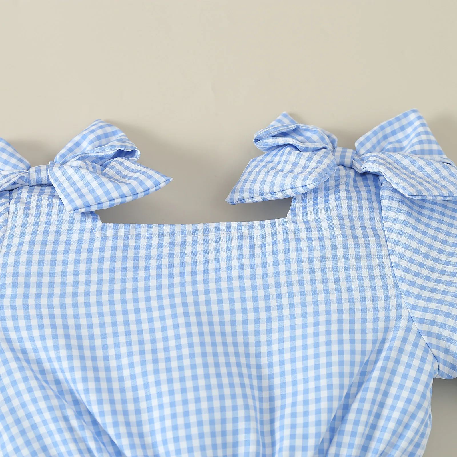 Blue Plaid Smocked Summer Outfits for Toddler Brother And Sister Matching Gentleman Boy Set Girl Dresses Family Clothes - Girl Dress / 18-24M
