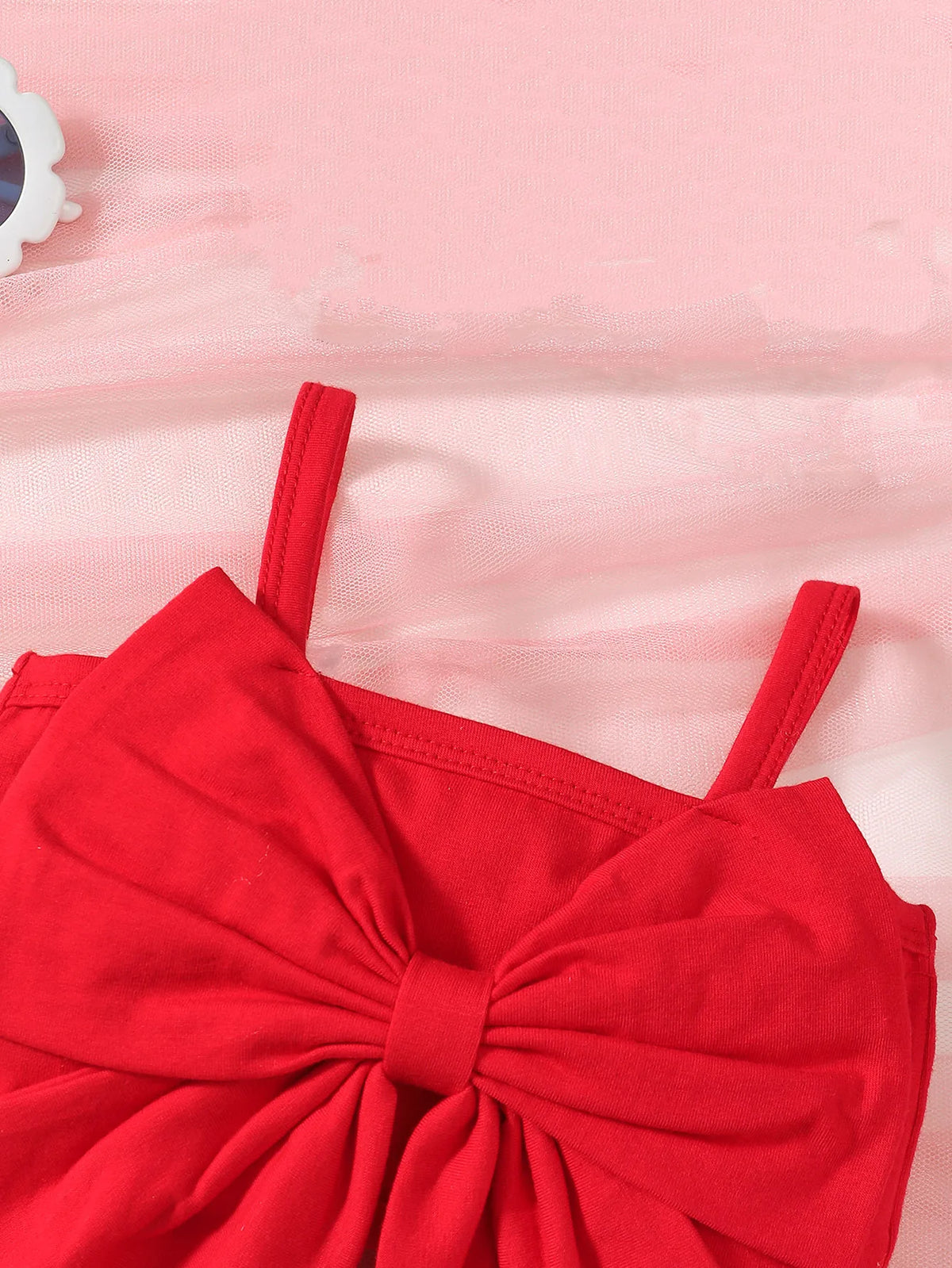 0-2 Year Old Baby Summer Girl Suspender Large Bow Daily Party Bell Bottoms Plaid Printed Headwear Baby Clothes - 31143-Red / 6M