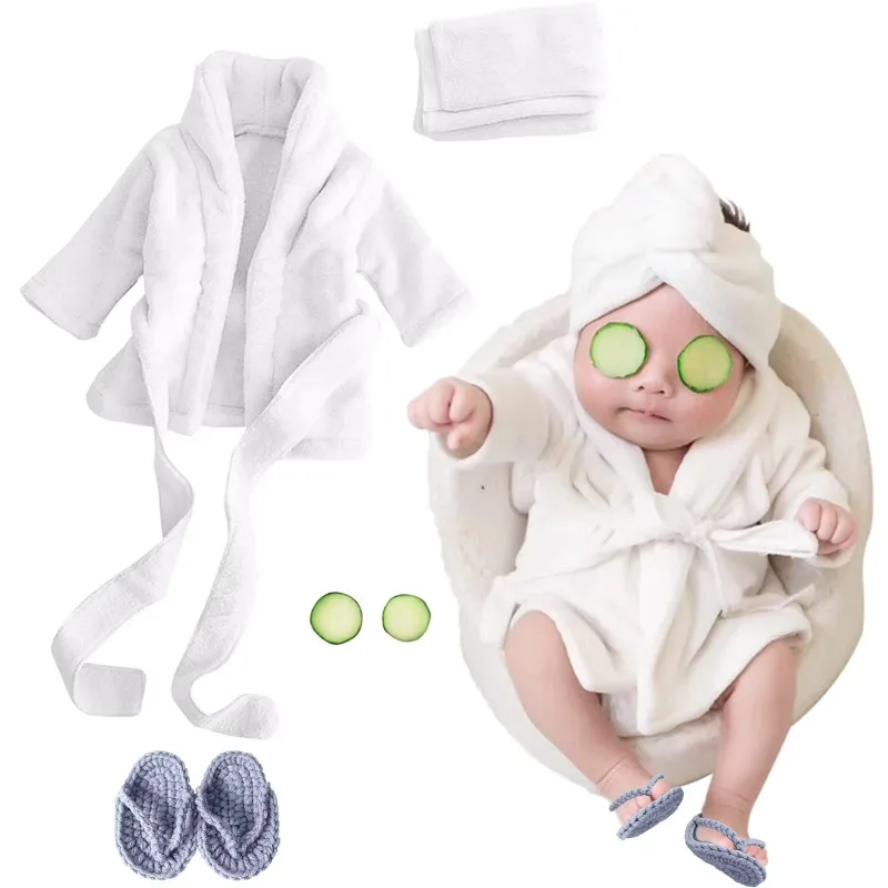 5PCS Newborn Photography Outfits Props Baby Bathrobes Bath Towel with Slippers Cucumber Infant Girl Boy Photos Accessories