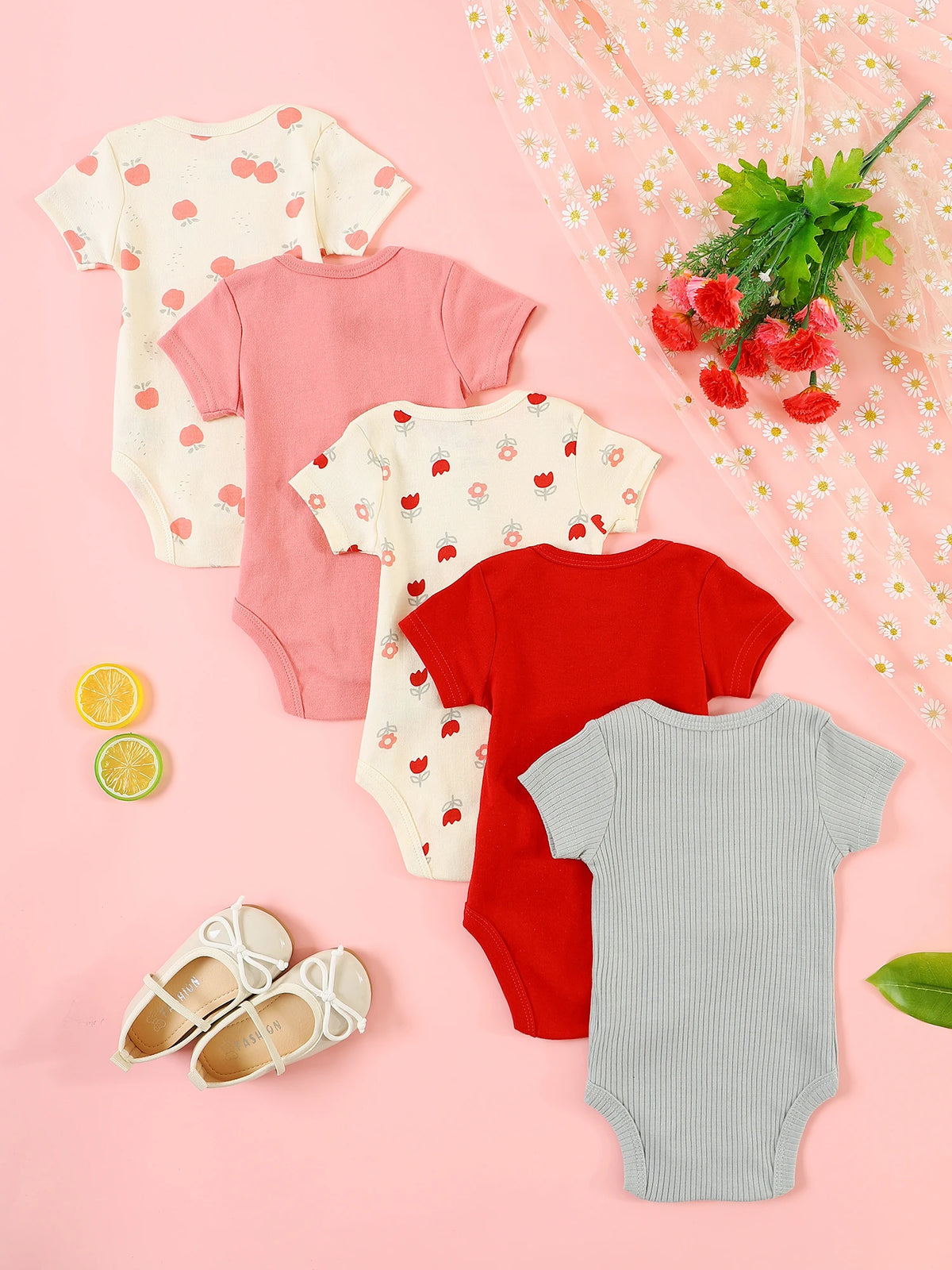 Baby girl clothes 5PCS Baby girl onesie newborn baby clothes summer Short-sleeved jumpsuitSuitable for 0-9 months - GRAY / 6M