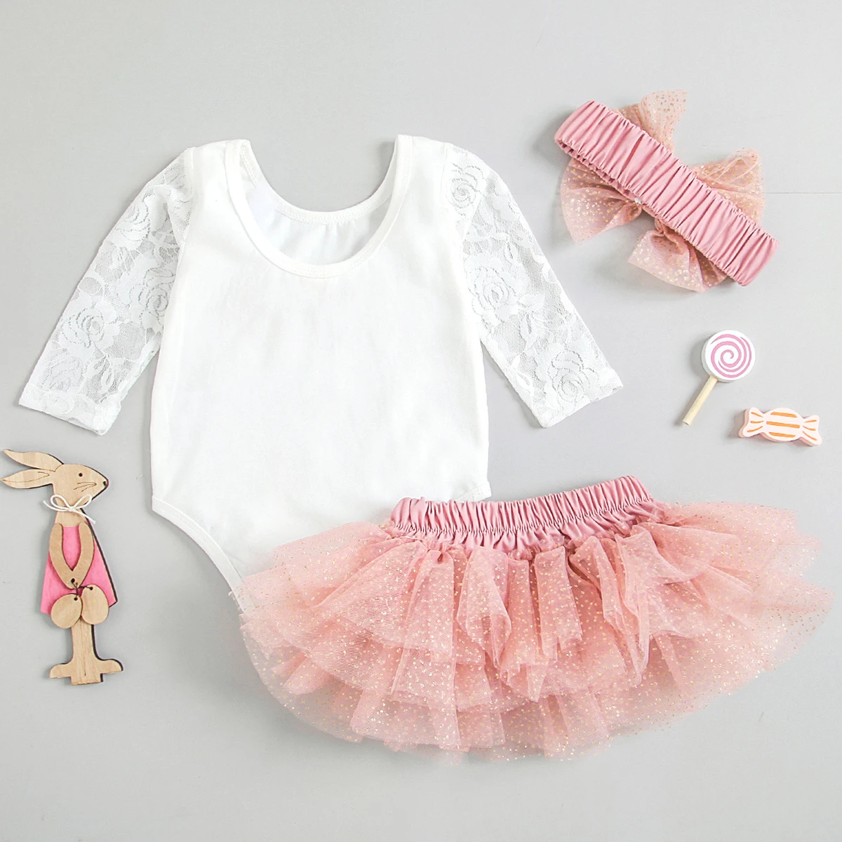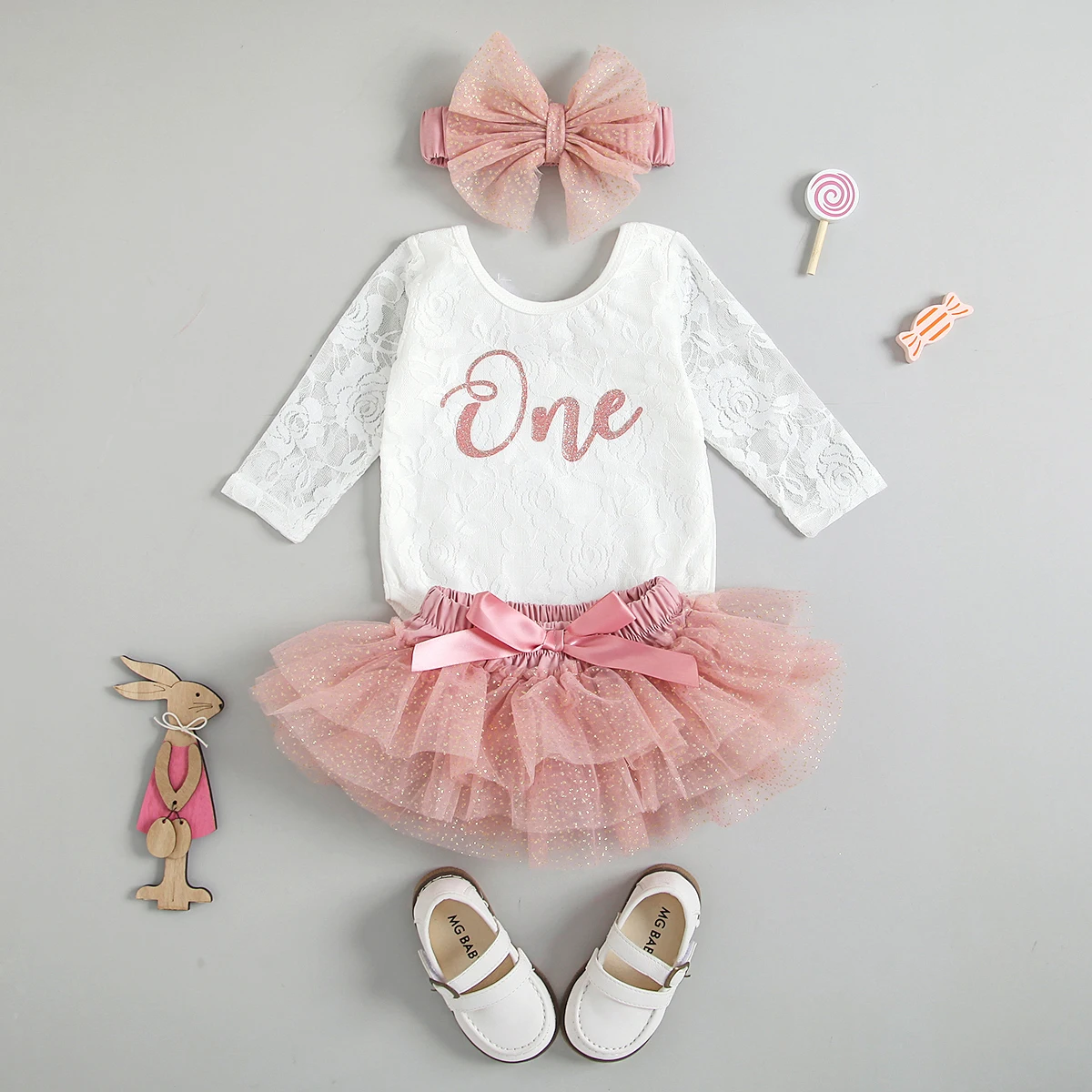 Toddler Baby Girls My First Birthday Outfits Cute Long Sleeve Floral Lace Romper Tutu Skirt Headband Children's Clothing Set - Pink / 24M